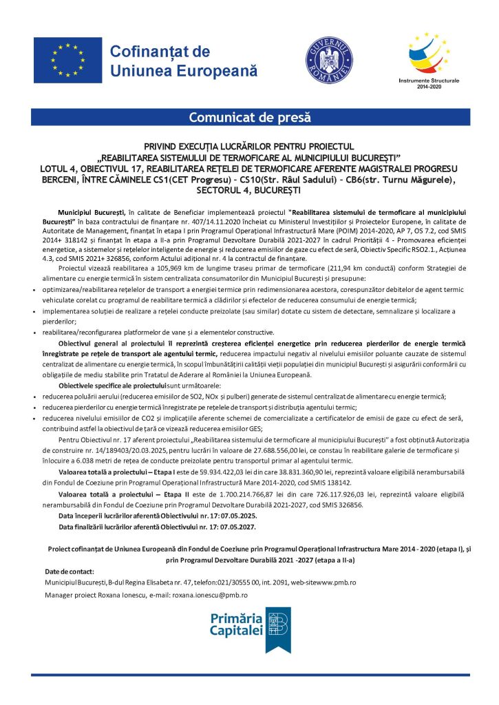 LOTUL 4, OBIECTIVUL 17, REABILITAREA REȚELEI DE TERMOFICARE AFERENTE MAGISTRALEI PROGRESU